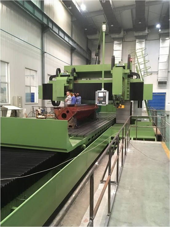 據悉,該機床是目前杭機股份制造的最大規格的動梁龍門導軌磨床,也是國內同行業中精度最高、規格最大的機型,整機靜壓工作臺,全長精度0.05mm,不遜于進口同類機床,是加工機床床身、橫梁、立柱等大尺寸零部件導軌精度的關鍵設備和利器。該機床將同另外3臺德國原裝進口的導軌磨床一起為客戶服務,該設備所在的恒溫車間成為用戶重點示范車間。